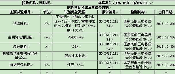 XGN-12/1250A 環(huán)網(wǎng)開關(guān)設(shè)備(檢驗(yàn)報(bào)告)