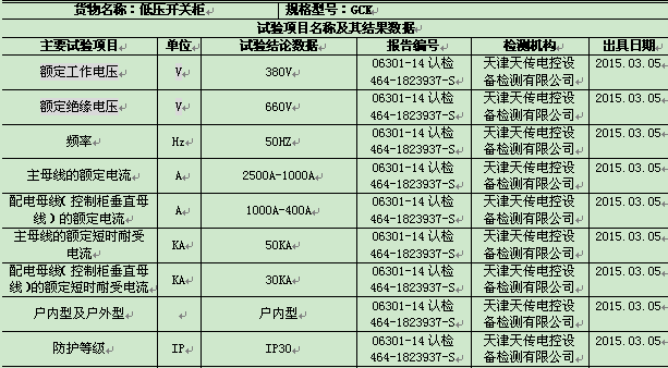 GCK 低壓成套開關(guān)柜(試驗(yàn)報(bào)告)